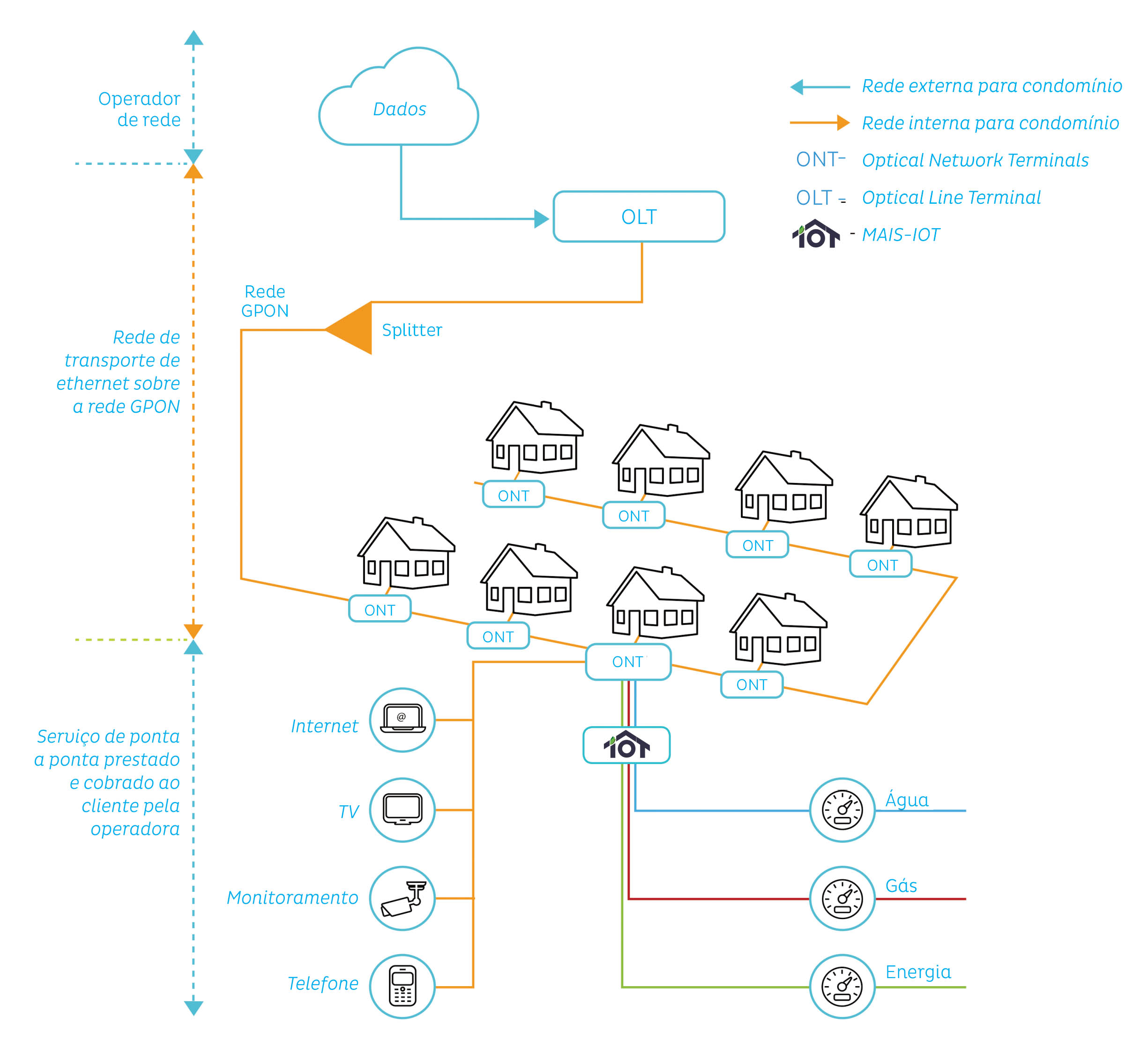 InCo também é capaz de abrigar diferentes operadoras, permitindo que todas possam usar a rede para oferecer seus serviços individualmente a cada uma das famílias residentes.